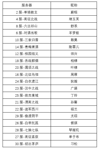 全部封禁名单,请前往《三国志威力无双》官网查看。