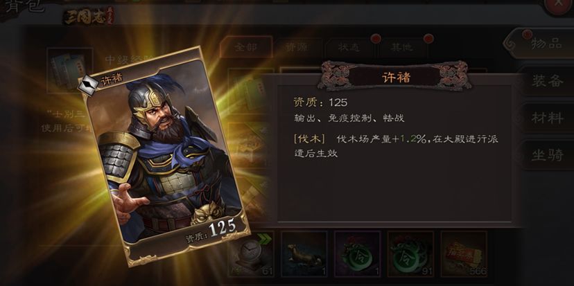 许褚能够在正面给予对手大量伤害,但是若对方后排刚好对其起到限制,那么想要获胜将变得较为困难。此时队伍中骑兵的作用便显现出来,马超与涂晃,一个越战越勇的群体伤害,一个极高的单体伤害,能够快速解决对手后排,减轻许褚的压力。最后华佗虽不擅长进攻,但是许褚主战法有一定的缺陷,华佗的回血能够很好的保证他的生存空间,从而给予源源不断的输出。