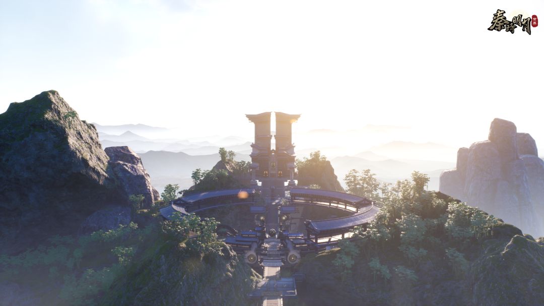 除了机关城,秦时明月世界还有墨家门派驻地墨台。同样依山而建,薄雾环绕下如梦似幻,犹如云上仙境。