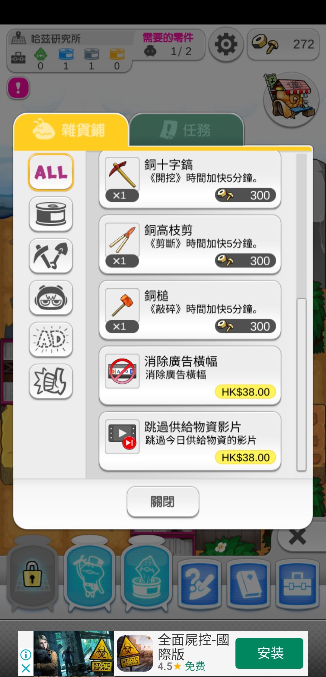 白金罐头会出现稀有菇菇加速挖掘(但白金罐头也不可以跨地图)其次就是消除广告实用些。