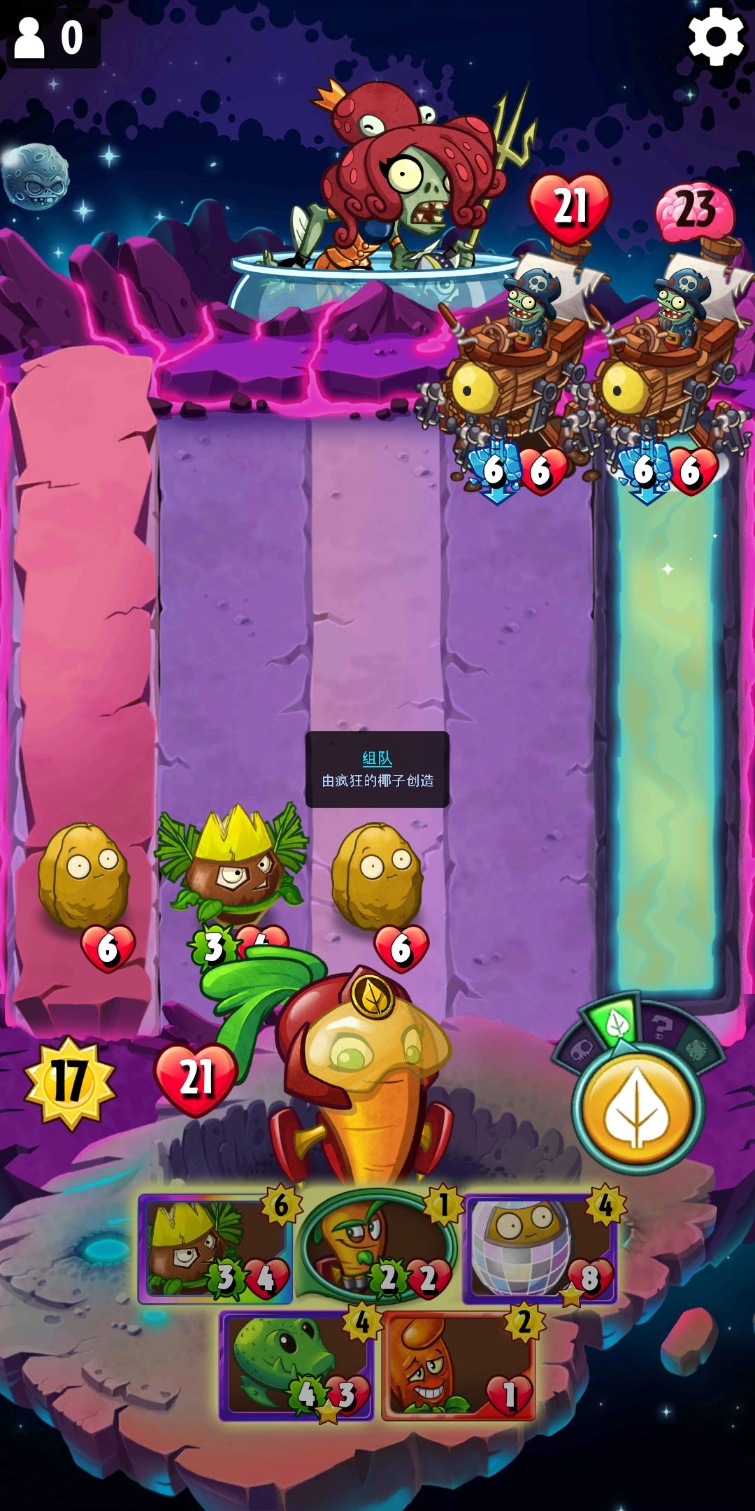 这里我直接用3路的坚果给疯狂椰子进化,然后在5路下鳄梨