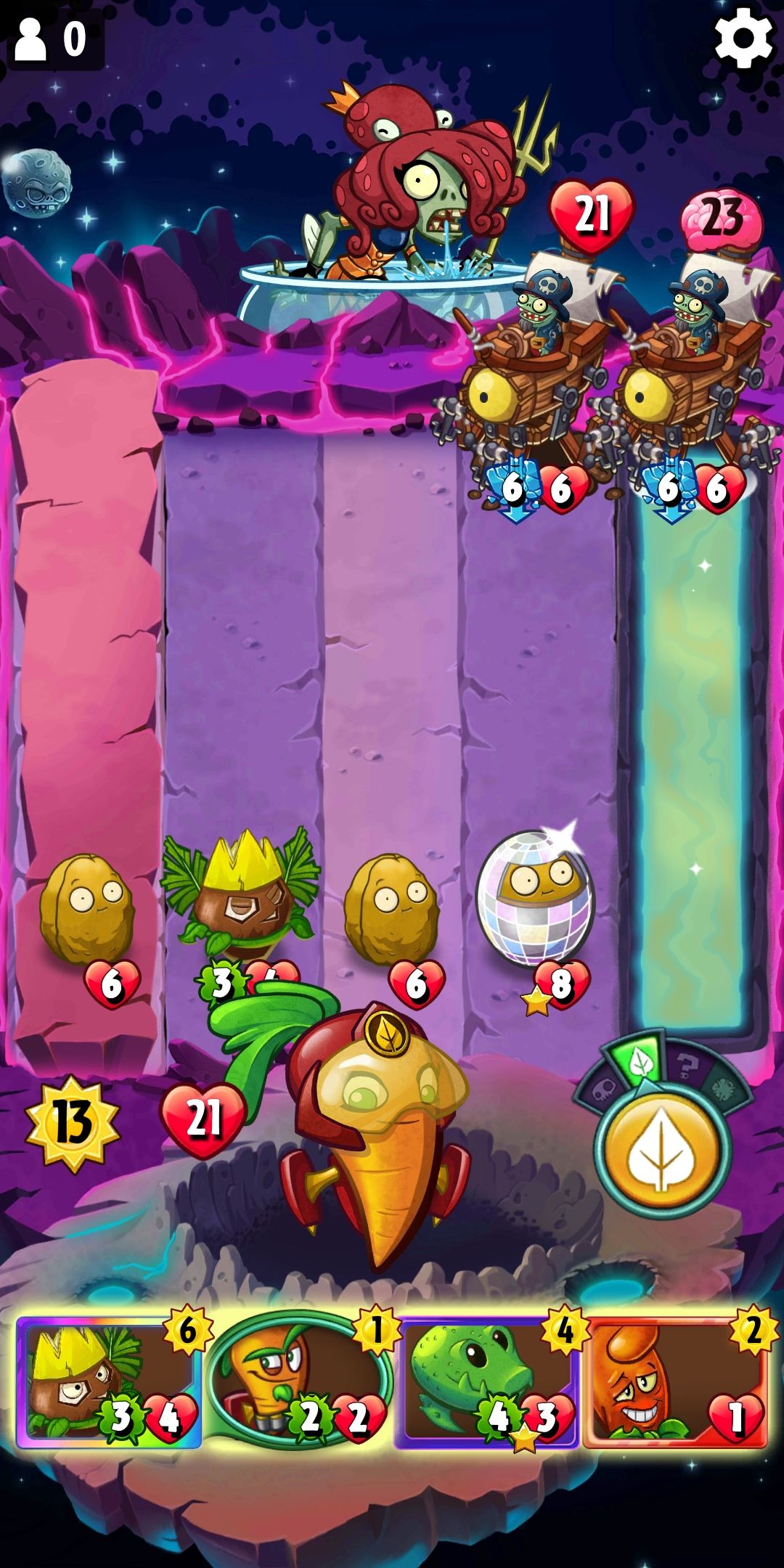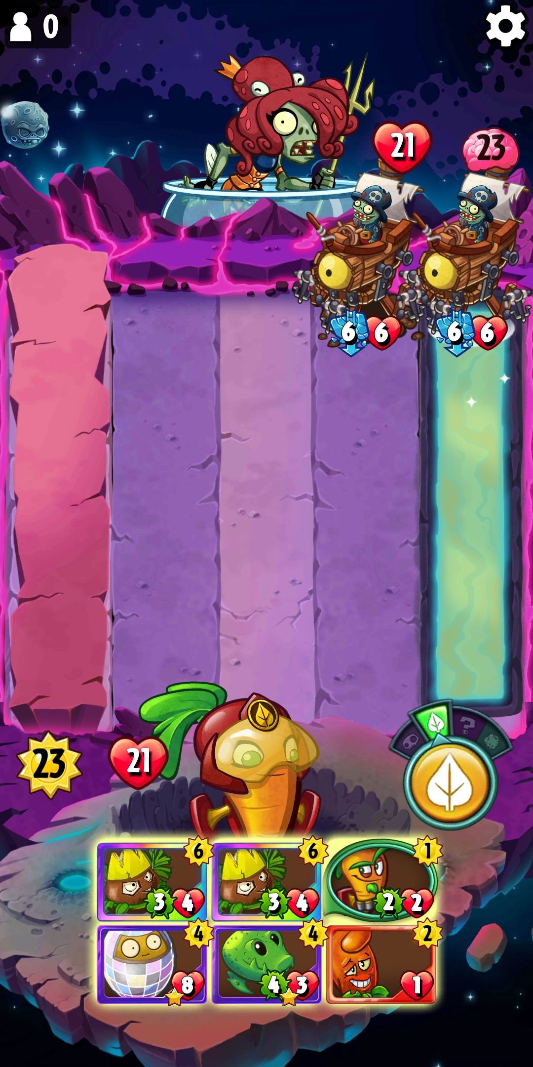 首先2路下疯狂的椰子召唤出坚果为下一个疯狂椰子做准备,然后4路下反射坚果
