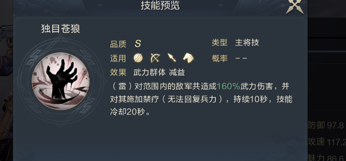 主将技:独目苍狼