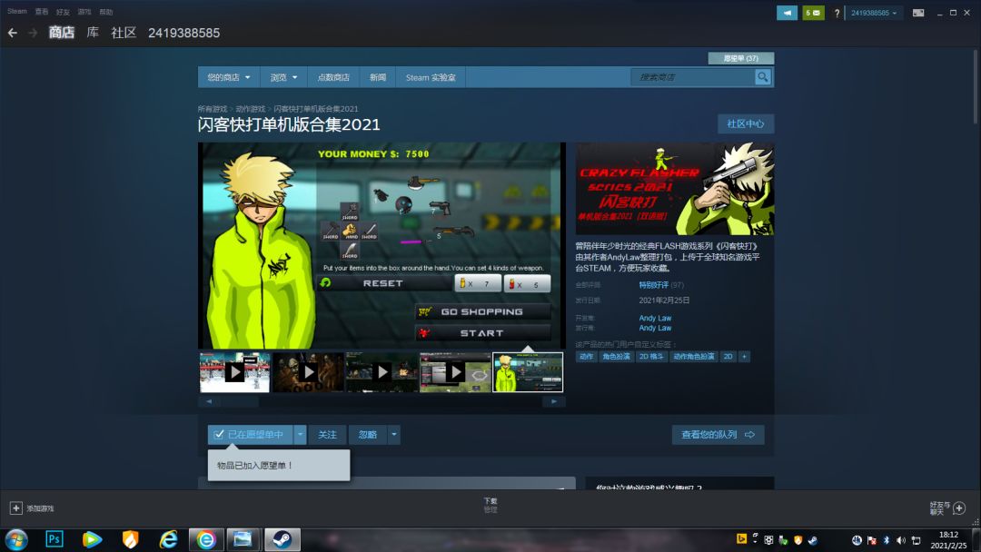 小消息:闪客快打登陆steam