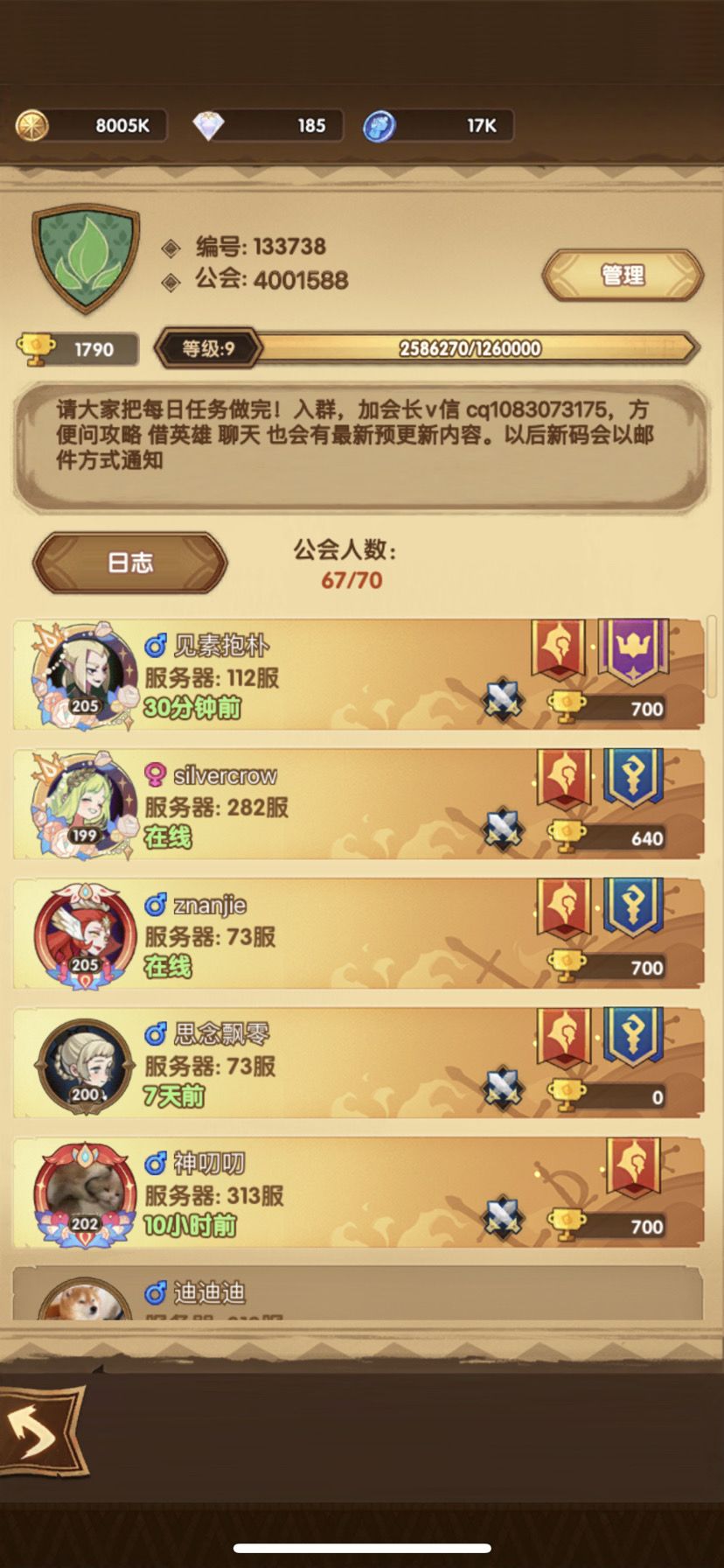 (公会小伙伴大多在30-34章,进度相似的优先,活跃玩家优先!)