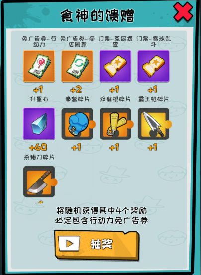 用观看视频的方式抽取拳套碎片,双截棍碎片等武器碎片倒还看起来较为正常,可抽取免广告卷可确实是个有趣的设置。