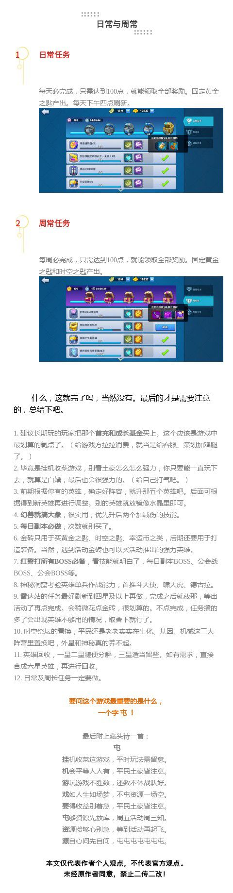 【攻略投稿II】平民向玩家攻略小计