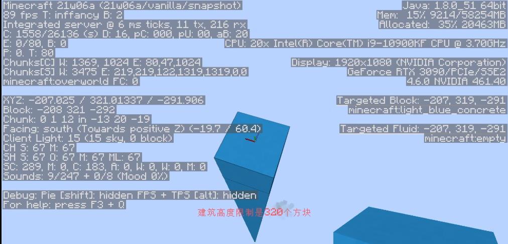 值得一提的是,本次更新更改了高度限制,上下各增加64格,最高限高为320格,基岩层改为-64格