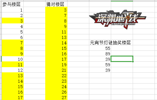 抽奖结果公示: