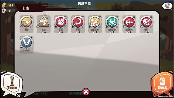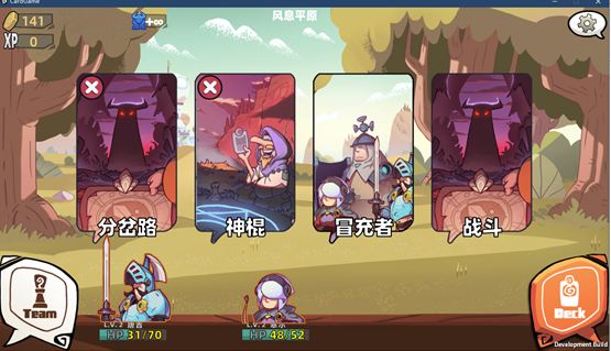 我们最多可以控制3名角色,三名角色公用同一套卡组,并且所有卡牌都是通用的,这也是我们游戏的特色之一,这意味着,法师可以叠盾,战士也可以连射;具体卡组可以点开“deck”界面查看。