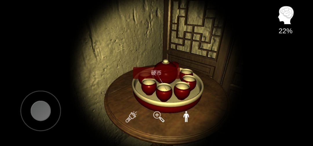 接着继续向右走,走到茶壶这里,点茶杯,获得硬币一枚