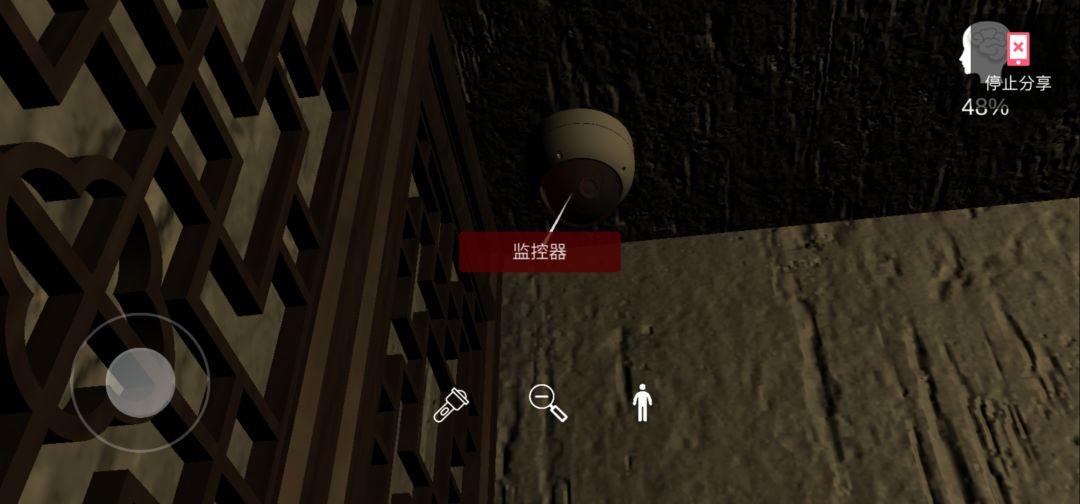 再走到放有椅子的墙角,抬头,点监控器,