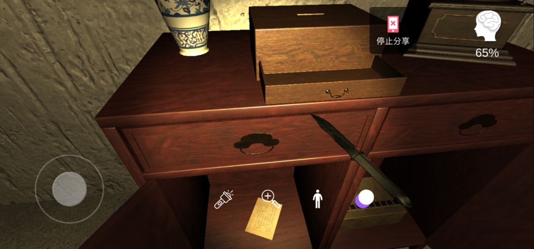硬币全了以后,点击花瓶旁边的盒子,得到手电筒