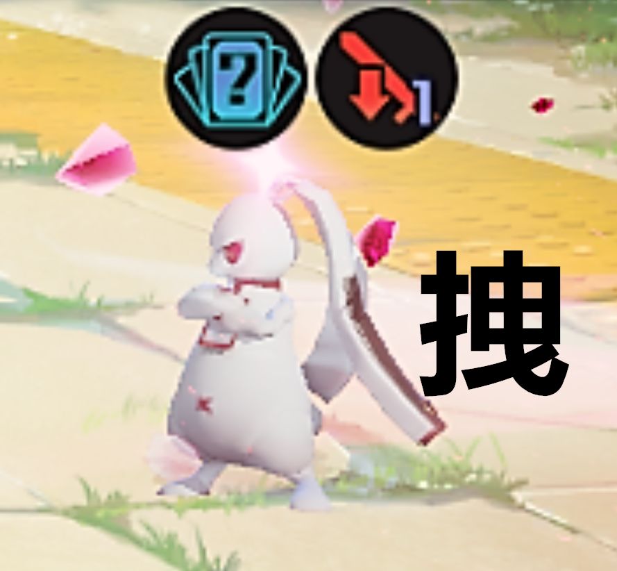 2、这个兔子一脸的傲娇,并且给人天下无敌的感jio。只要它在场上时,会将所有手牌能耗随机变化(0-3费),在击败后,才回归正常。