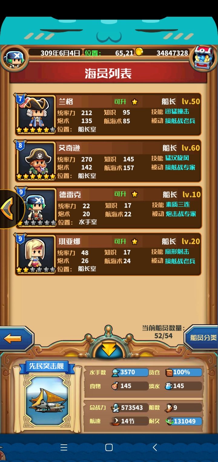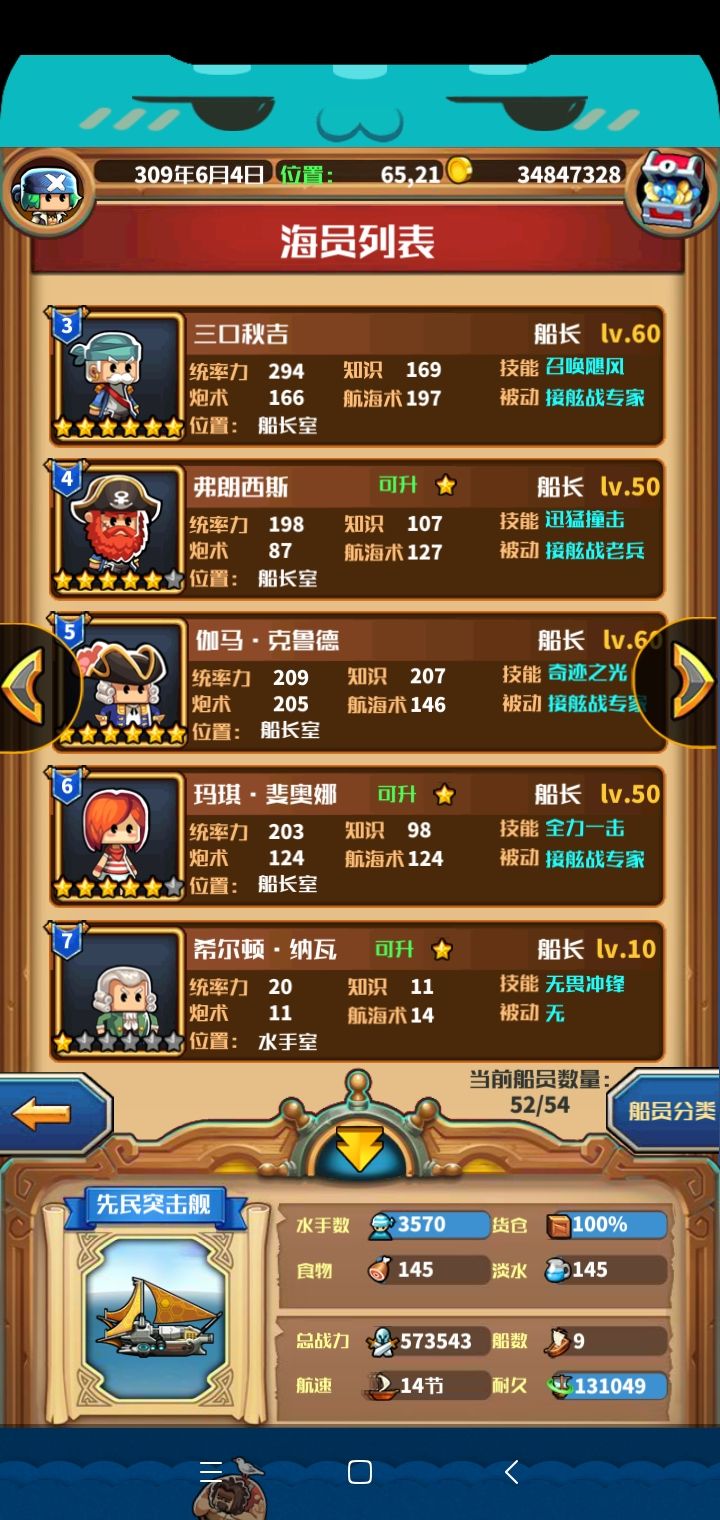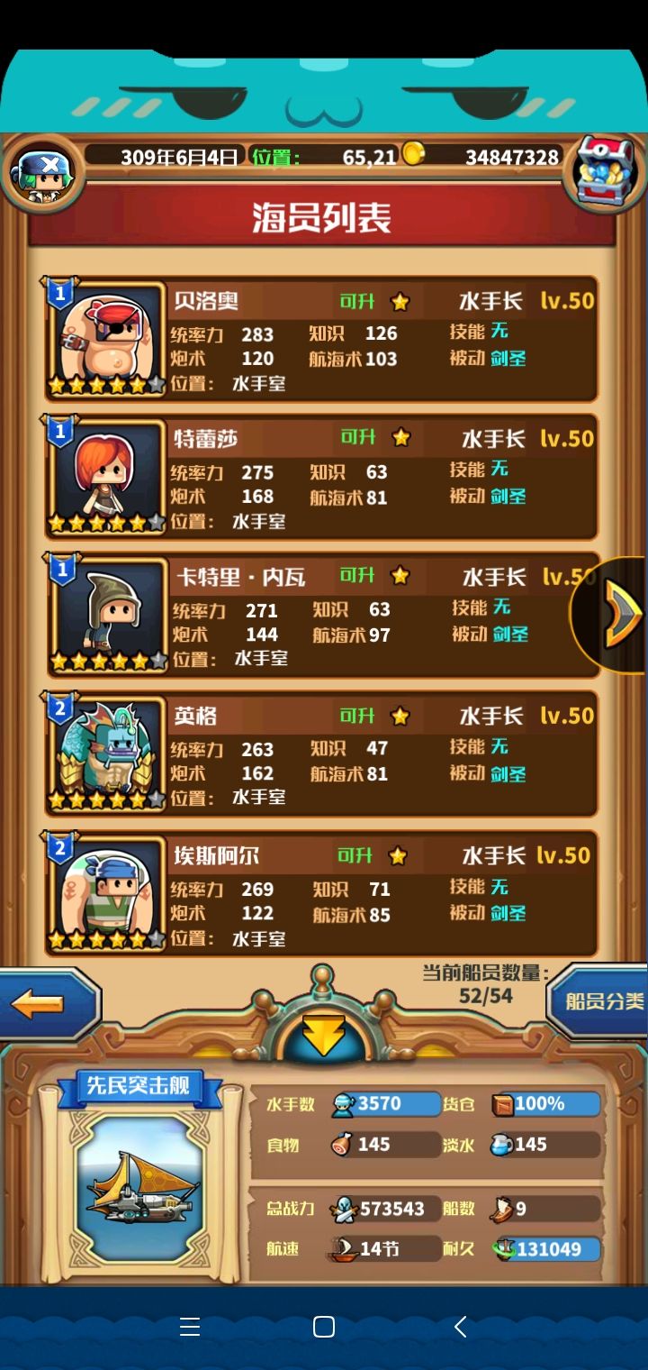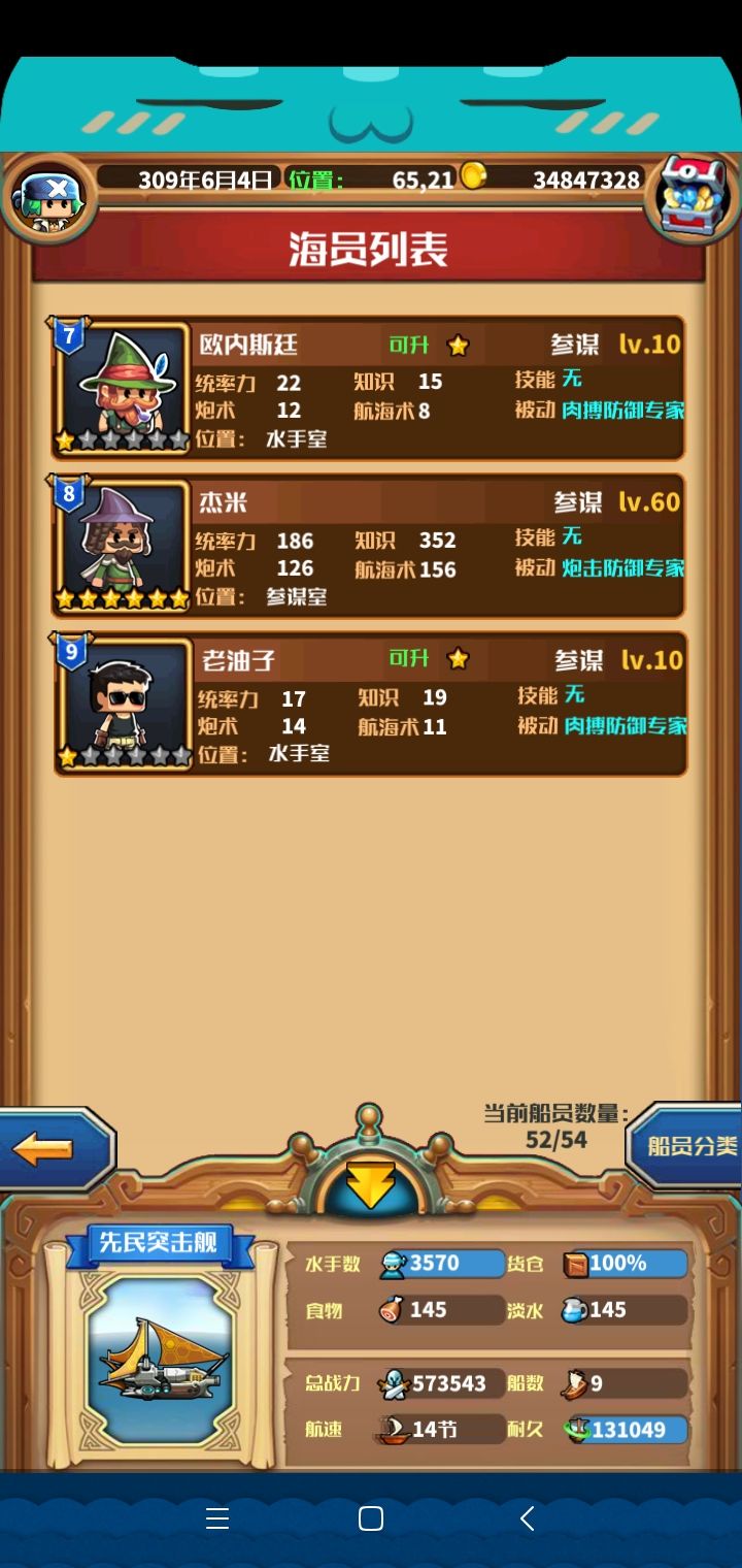 这个存档9艘先民船都升到了8级,但只有真先突的船长室、水手室、参谋室升到了8级,其它船只升到了7级