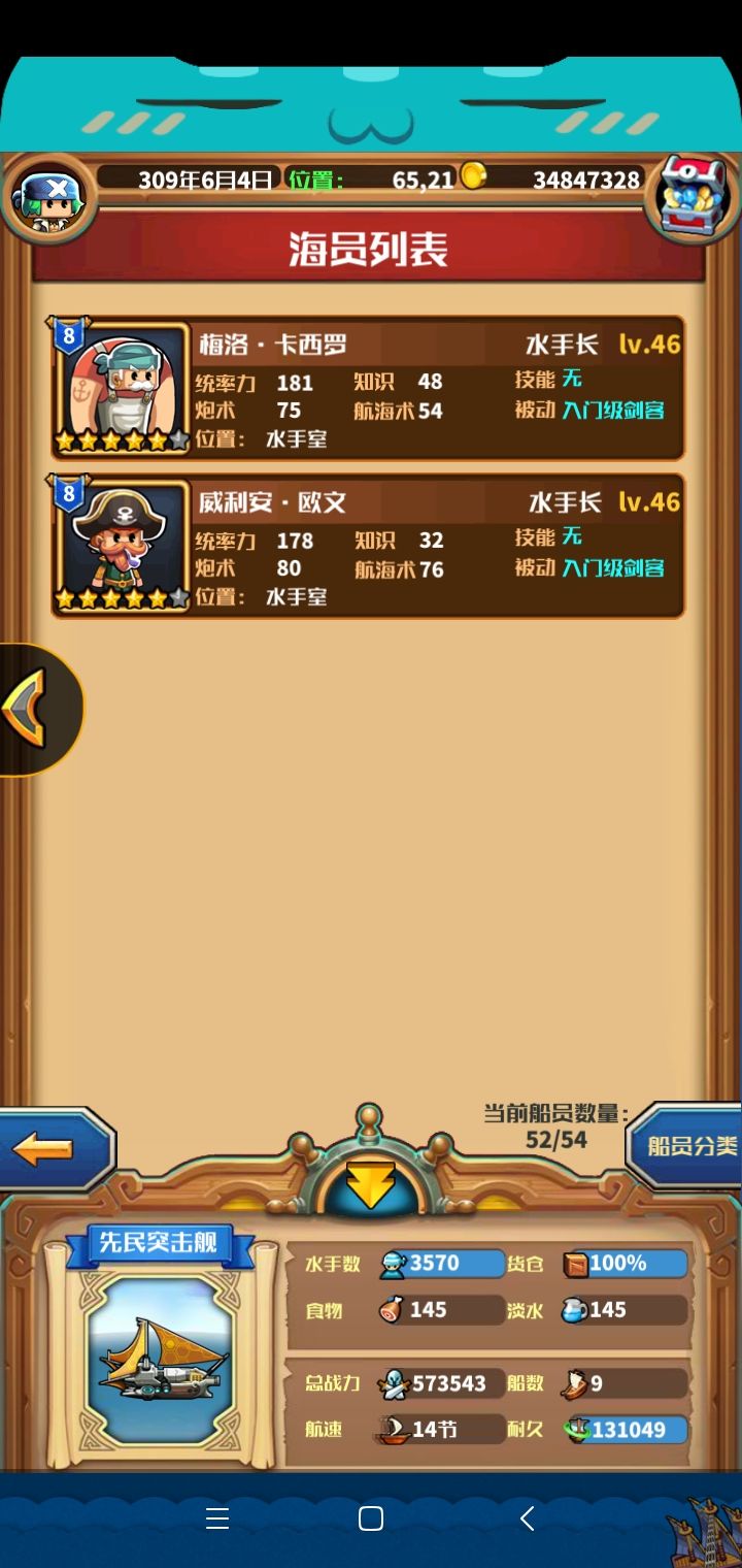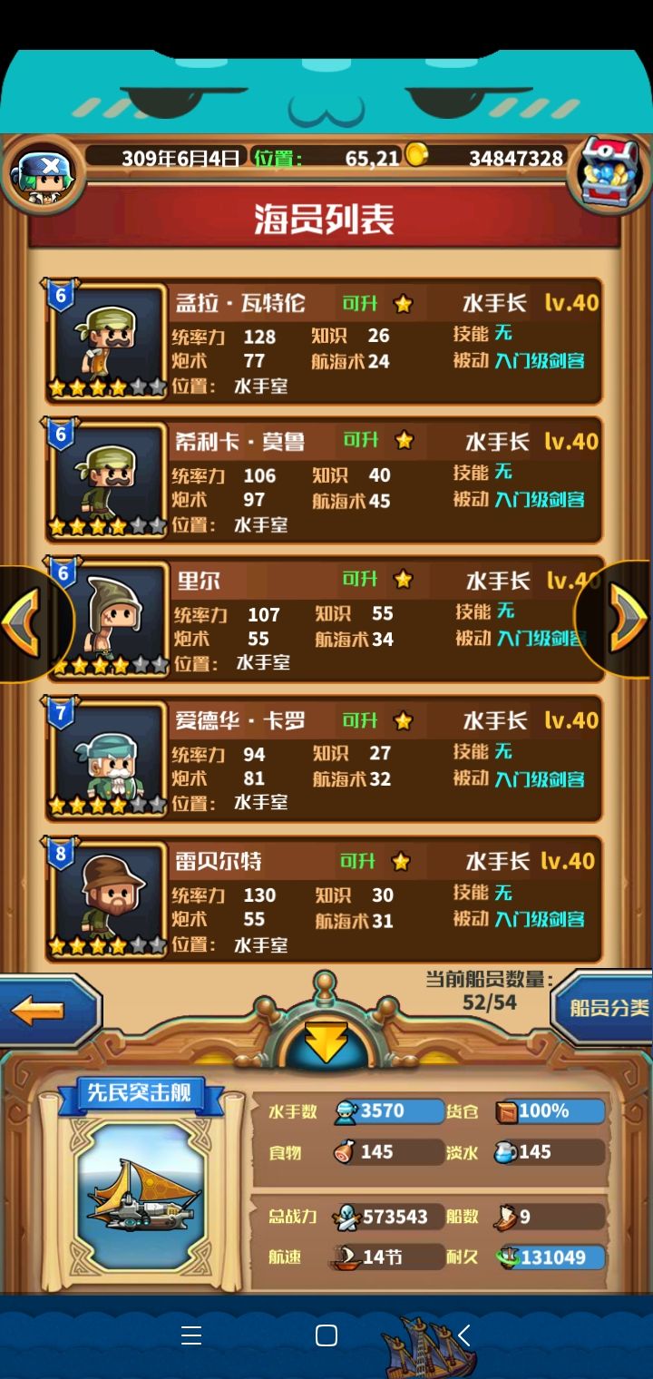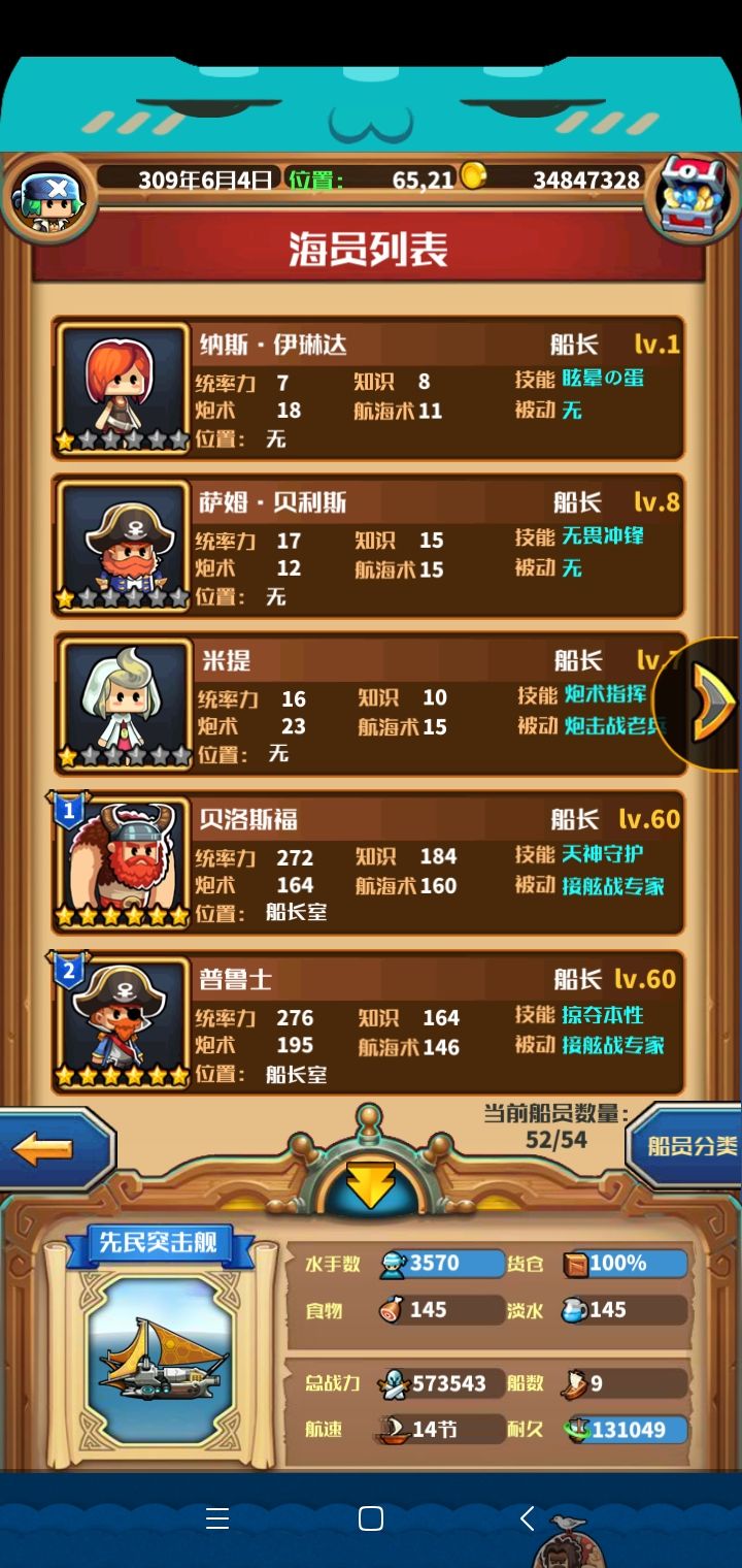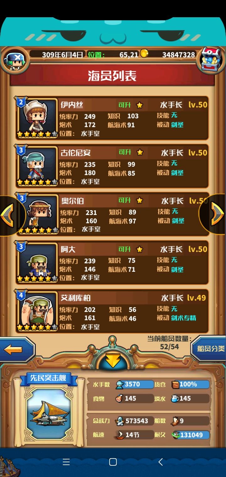 这个存档9艘先民船都升到了8级,但只有真先突的船长室、水手室、参谋室升到了8级,其它船只升到了7级
