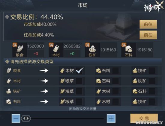 市场玩法在主公府8级之后可以通过建造市场解锁,解锁之后玩家可以将自己仓库中多余的资源转化成缺少的资源。但是这种转化有一定的百分比,比如2级市场1万的粮食只能转化成5000的石头,转化比为50%,不过,随着市场等级的提升,以及商贸官的任命,转化百分比会越来越高。