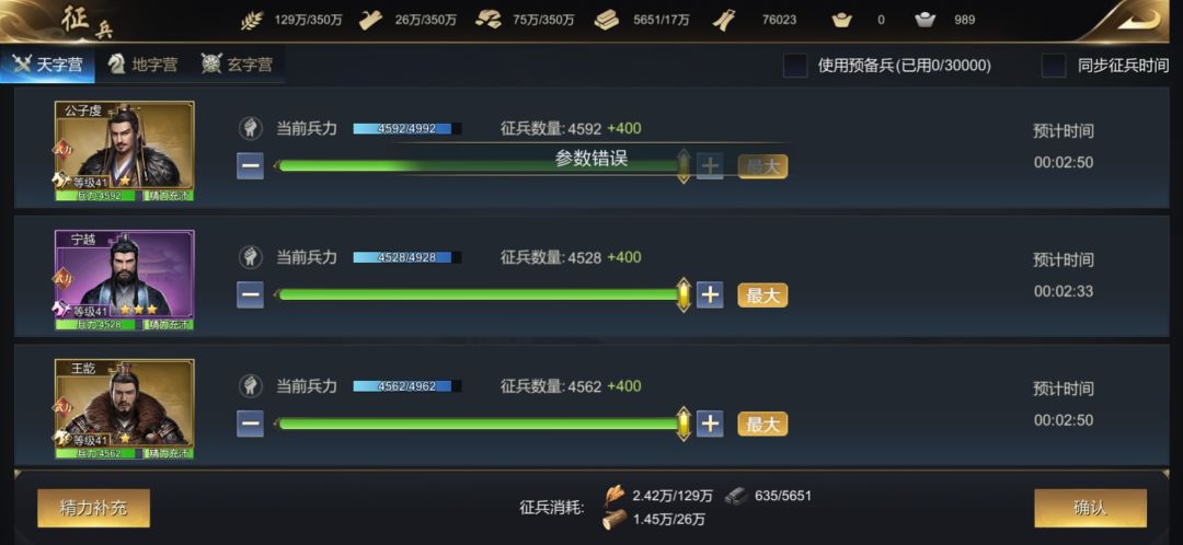 155区,周御—征个兵你给我写参数错误我tm资源够预备兵够你不让我招兵,就针对我?让不让玩游戏了