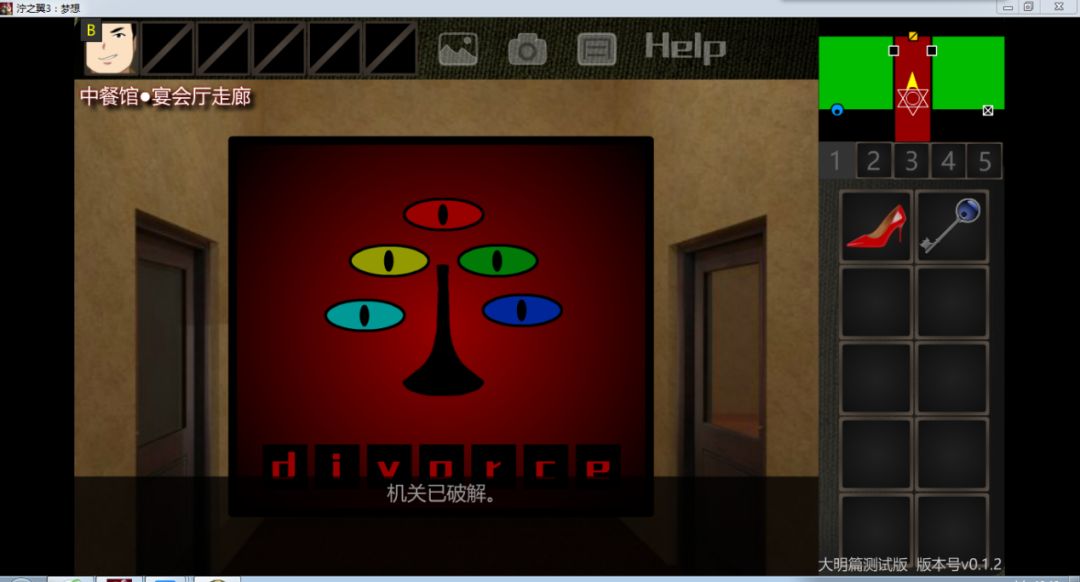 15.回到走廊,查看机关,根据线索“A=H T=I”的提示,我们可以得知,字母需要加工才可以得到答案,现在我们得到的字母线索只有“BMW”,而加工,即为去掉字母的上半部分,所以密码即为DIVIVV