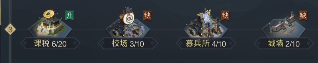 主公府是领地的中心枢纽。升级主公府可提升军团将令值上限。最重要的建筑,升级主公府才能解锁建造更高级的建筑,游戏前期应尽快升级到7级或8级。
