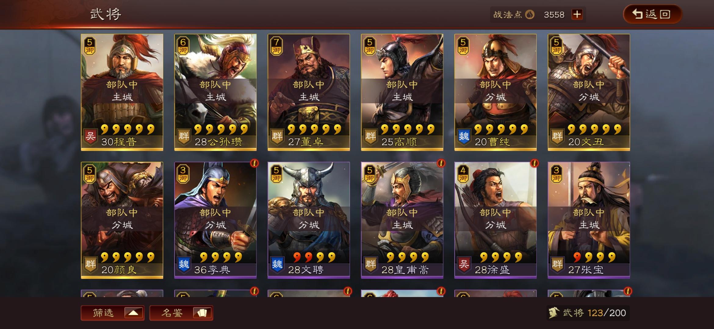 大佬们,我这些武将能不能整几套阵容来啊,紫将几乎全都有