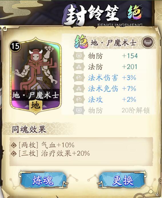魂石的附加随机属性最好是能以法攻、血量、物防、物理免伤4项为主,因为封铃笙法防成长很高所以不用再刻意堆法防。