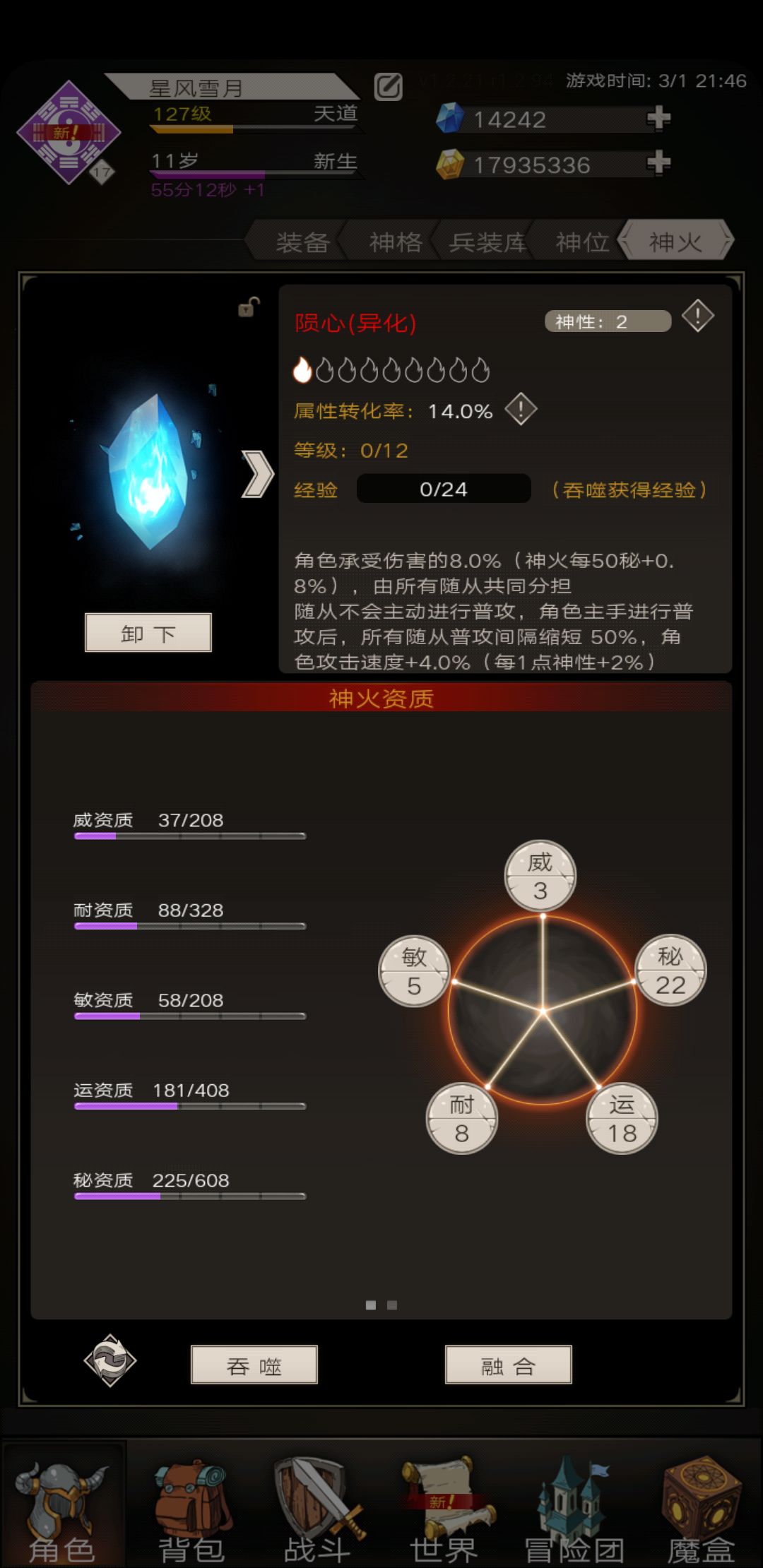副神格:攻击,减抗,星辰,时间,减血上限,暴击不够先补暴击,扛不住也可以减血上限换治疗。