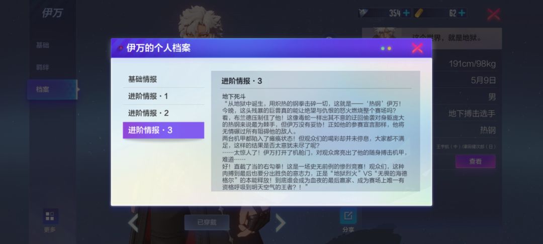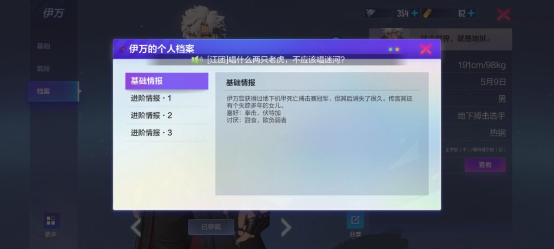 众所周知,目前为止只有伊万和R.E.D拥有【地下搏击手】和【地下机师】,共同拥有【地下】的灰色职业称呼,本人就特意趁着这波一块钱送专属好感礼物的机会赶忙换了一波伊万,然后确实从其背景中查出了那么些蛛丝马。