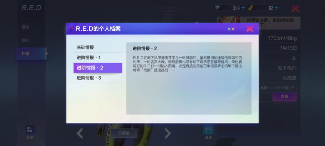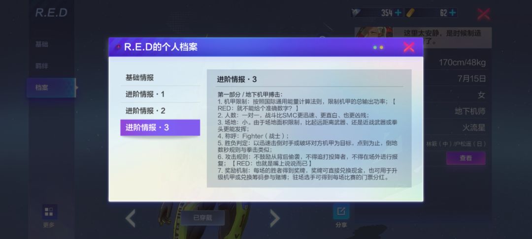 据传闻伊万本人有个失踪的女儿,且R.E.D的简介写了来自街头的叛逆少女且没有过去,先注意伊万的简介里还有个消失了很久,那么梳理下时间,假设R.E.D是伊万的女儿那么伊万应该是因为女儿失踪或者有了新的家庭而没有继续露面,且之后很长时间没有出现在地下赛场。