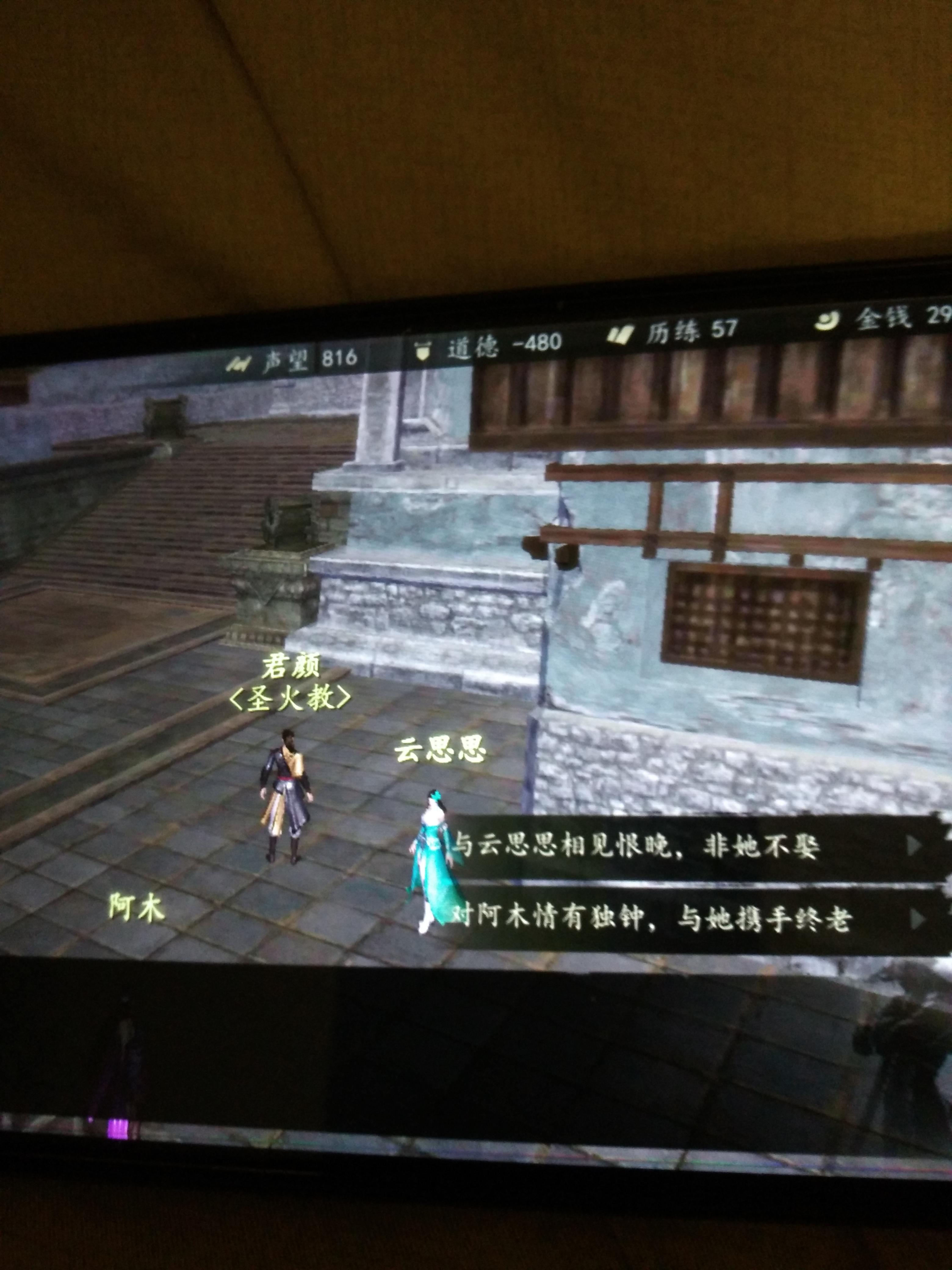 走邪线,主线去万毒时撩了阿木跟随,之后又在洛阳撩了云思思,当主线做完绞杀九剑山,苍山,洗剑山庄后,回南斗对话完教主。云思思说到外面逛逛,云思思想我去捅张天策小刀,阿木途中跑来说想我去帮她复仇,之后两女争风吃醋,二选一。(T_T)