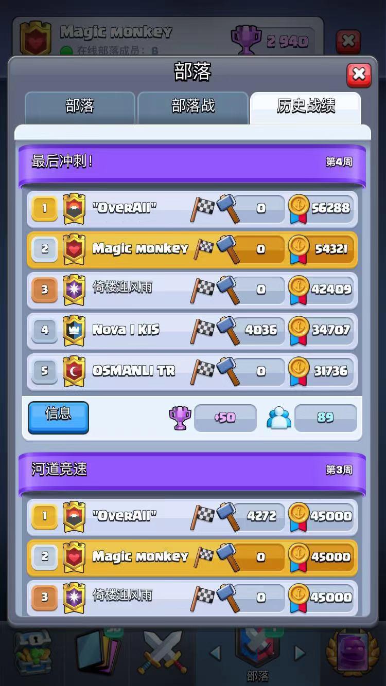 Magic Monkey 部落招收4600以上活跃玩家,积极捐卡+参与部落战(最好打满),部落战