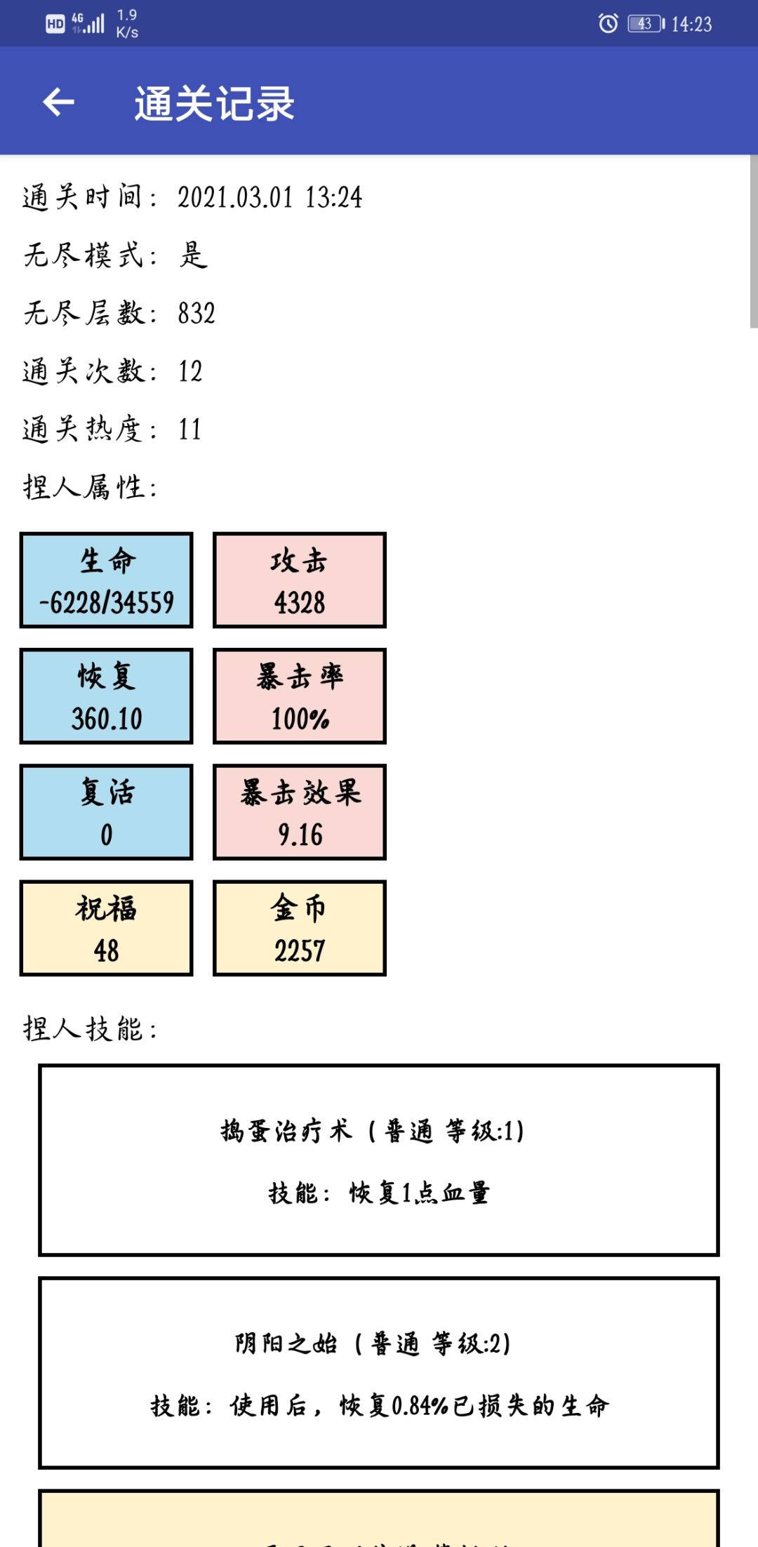 这游戏就开局带复活加攻击,然后能选百分比绝不选数值,只要扛过前70层,后面就好打了。但对于我这种脸不好的人来说,复活几率加到23%,也得靠商店的复活续命😂
