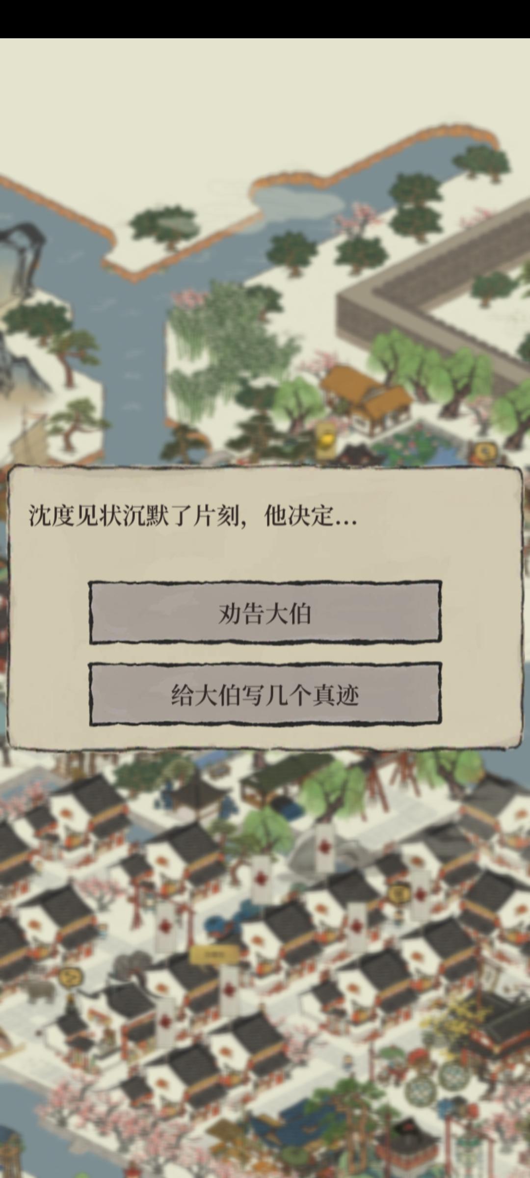 现在故事都有选项了吗?有没有经过这个故事旳大人说一下两个选项都会触发哪些内容啊?这是沈度和陆深的故事,这一小段说的是沈度的字体因受圣上赏识,被称赞为当代王羲之,字帖价格一路水涨船高,两人碰见一位大伯为小儿子买字帖。要素:字帖一两一张,大儿子科举无望,字帖不知是真是假且已卖光,东拼西凑这些钱为小儿子买个前程。
