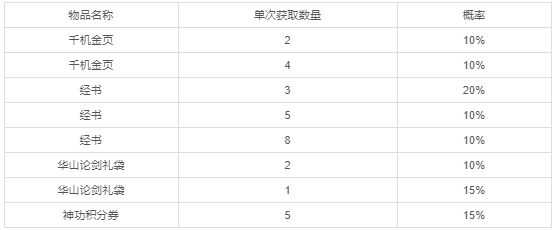 2、可抽取:千机金页、经书、华山论剑礼袋等超值大奖,100%中奖率!