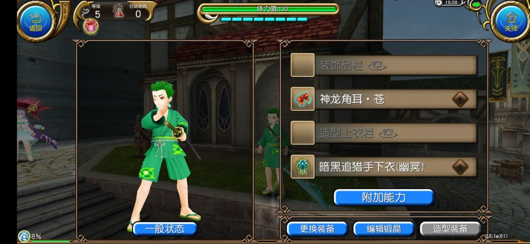 2衣服浴衣二,武器无铭打刀,追加水晶耳环。