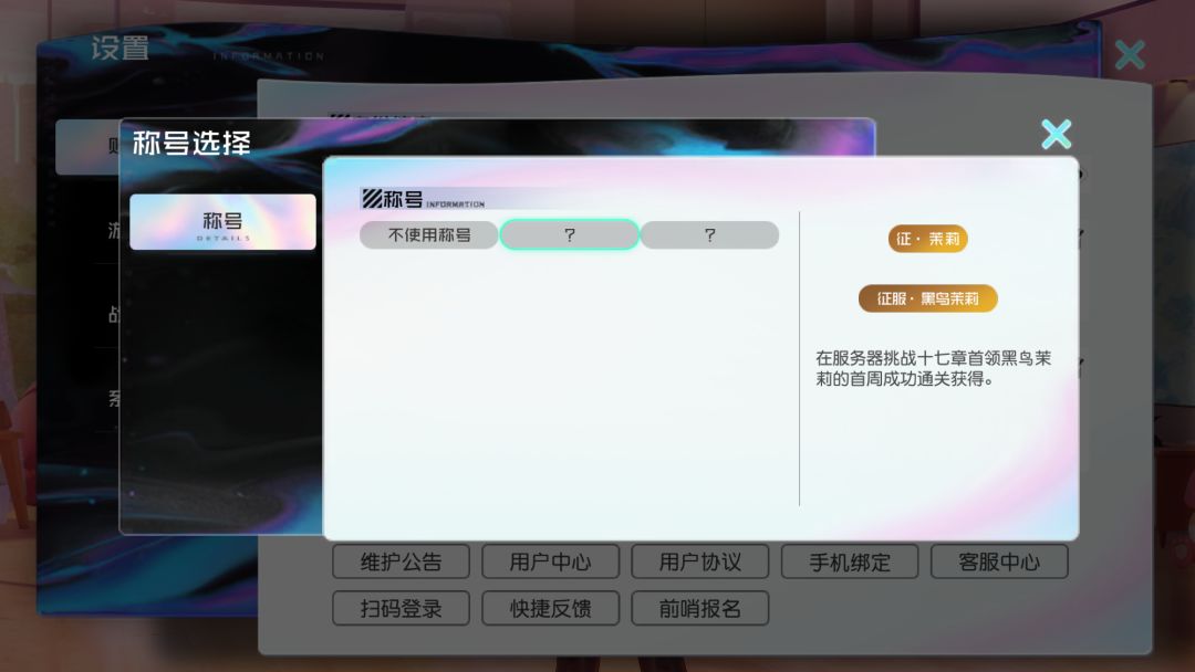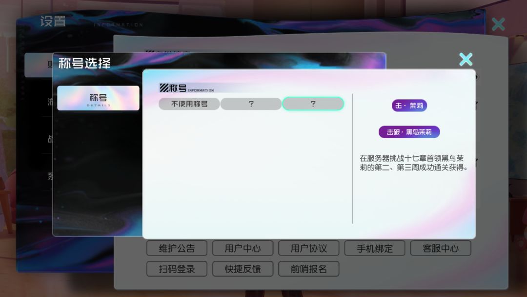 3月2日更新后,挑战世界线17章首领黑鸟茉莉首周通关后可以获得耀阶的称号,次周和第三周内完成挑战的可以获得高阶的称号。