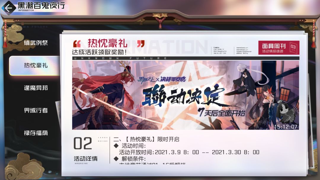 【百鬼夜行】活动预告目前可参与的: