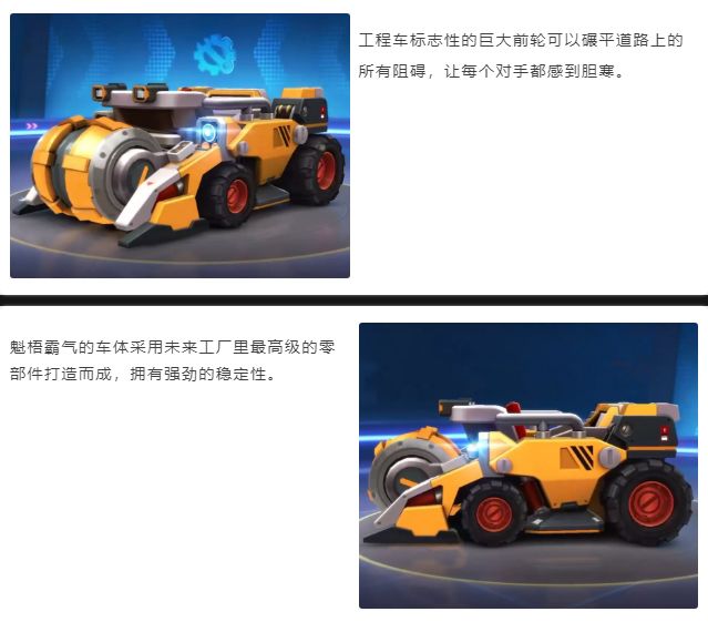 作为神秘工头精心研制的专属爱车,工程车拥有顶级的清障能力,还有极具特色的弹性陷阱、路障氮气加持,玩法丰富多样,战略性使用工程车的技能组合横扫赛场,满足你碾压一切的征服欲!