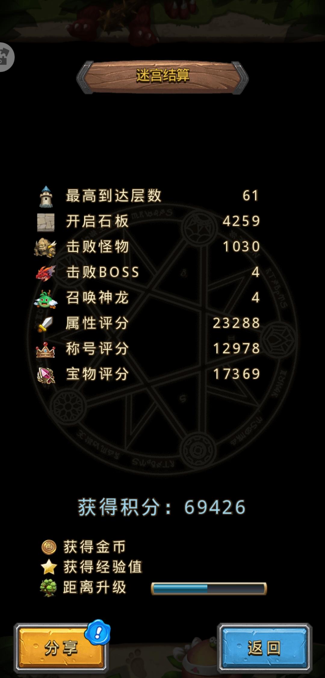 昨晚就剩最后50分钟,发现自己还没拿到钻石,赶紧掏出苦修兔子龙宝宝去出云岛刷工资。结果……爬到61层拿了四龙都没出钻石。