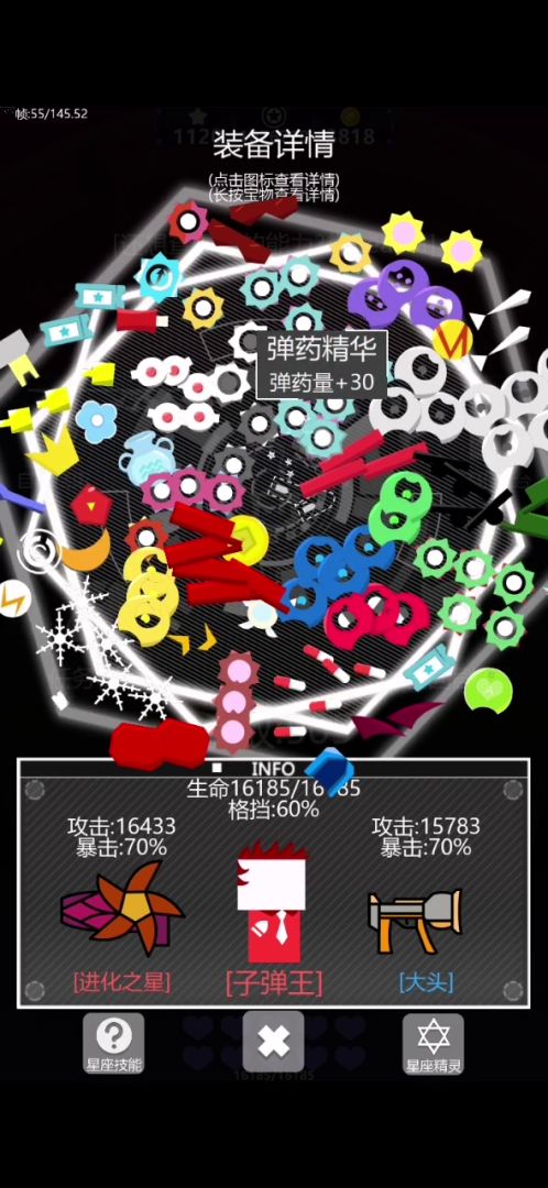 由于是狮子座直接开局进化星不解释,这把前期嫖到弹射心的时间点巨早,导致进化失败不少,后期就没怎么进化属性了,但是多重心弹射心很多,算是玩得很爽了。