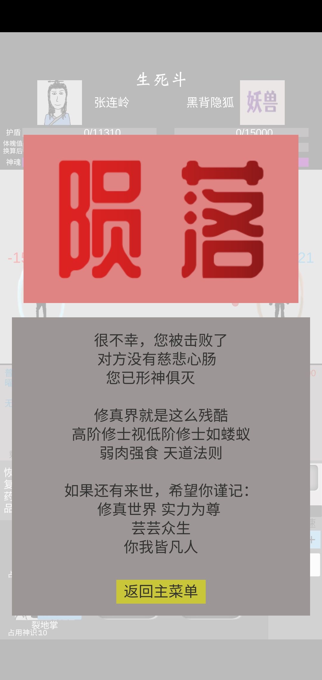 本来黑背妖狐我是不吃补气丹打得过的,结果重进游戏自动加倍对战一打居然就被打死了,望修复或者开发存档功能
