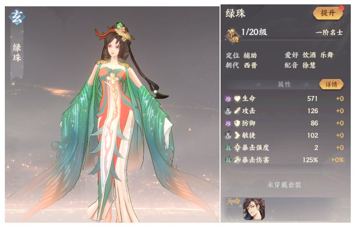 Ⓑ【绿珠】+【石崇】可以激活天命,强烈建议两人组成一队,【石崇】自身作为前排,因保护队友而抗伤严重,【绿珠】与之换血,性价比较高!