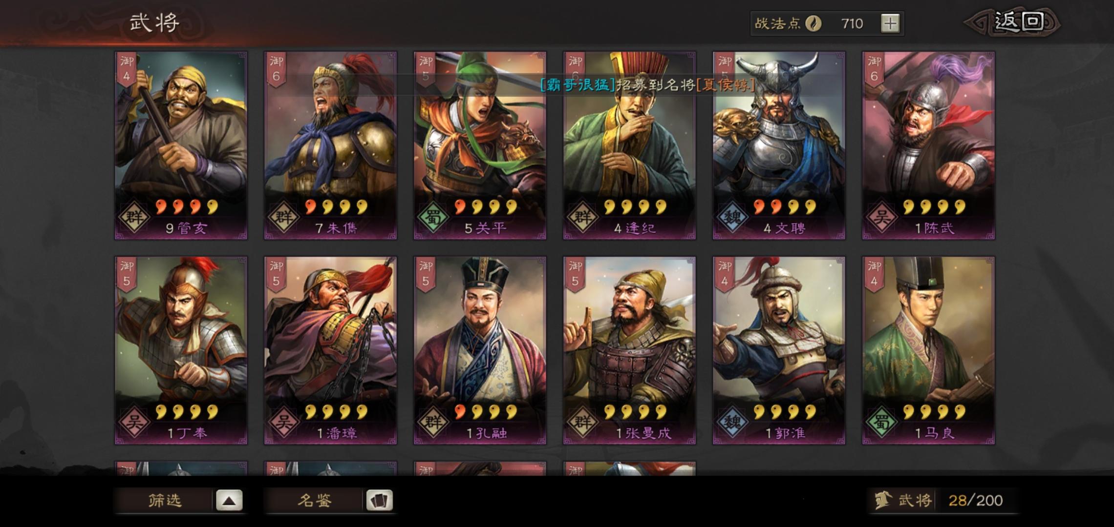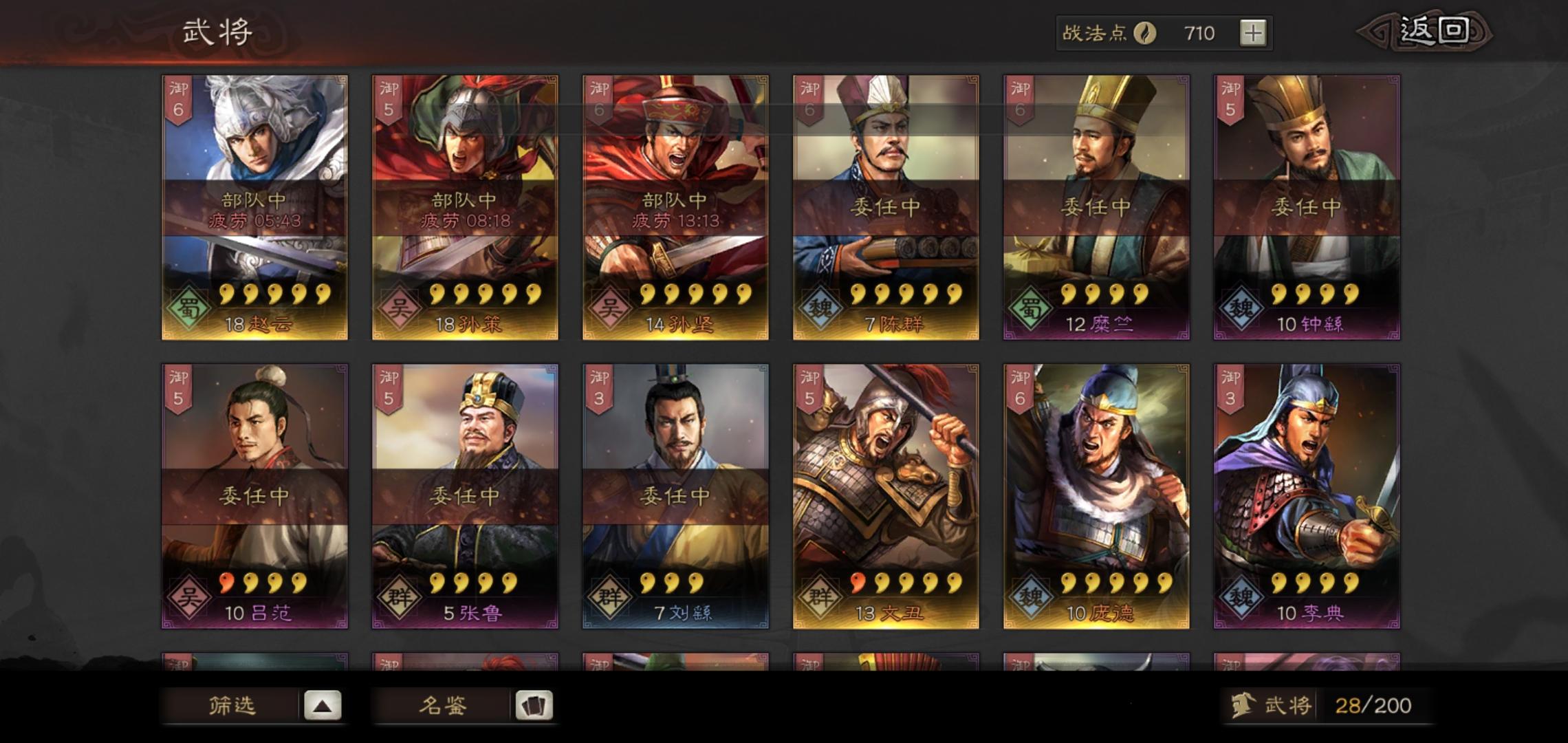 手头武将如下 发育求指教 第三天