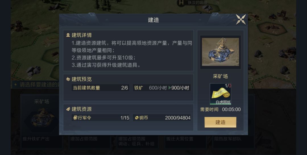 在开荒中期,城池内建筑基本成型,此时升级建筑则是主公们当务之急,所以对于木头与铁矿两种资源有着极大的消耗,行军令可侧重于木材地与铁矿地的采集。在开荒后期,主公们基本完成目前所需建筑,而此后将迎来与其他主公的博弈,想要占据优势,需要粮食征兵,以满足二队甚至三队的练级需要,行军令尽可能给予粮田使用。