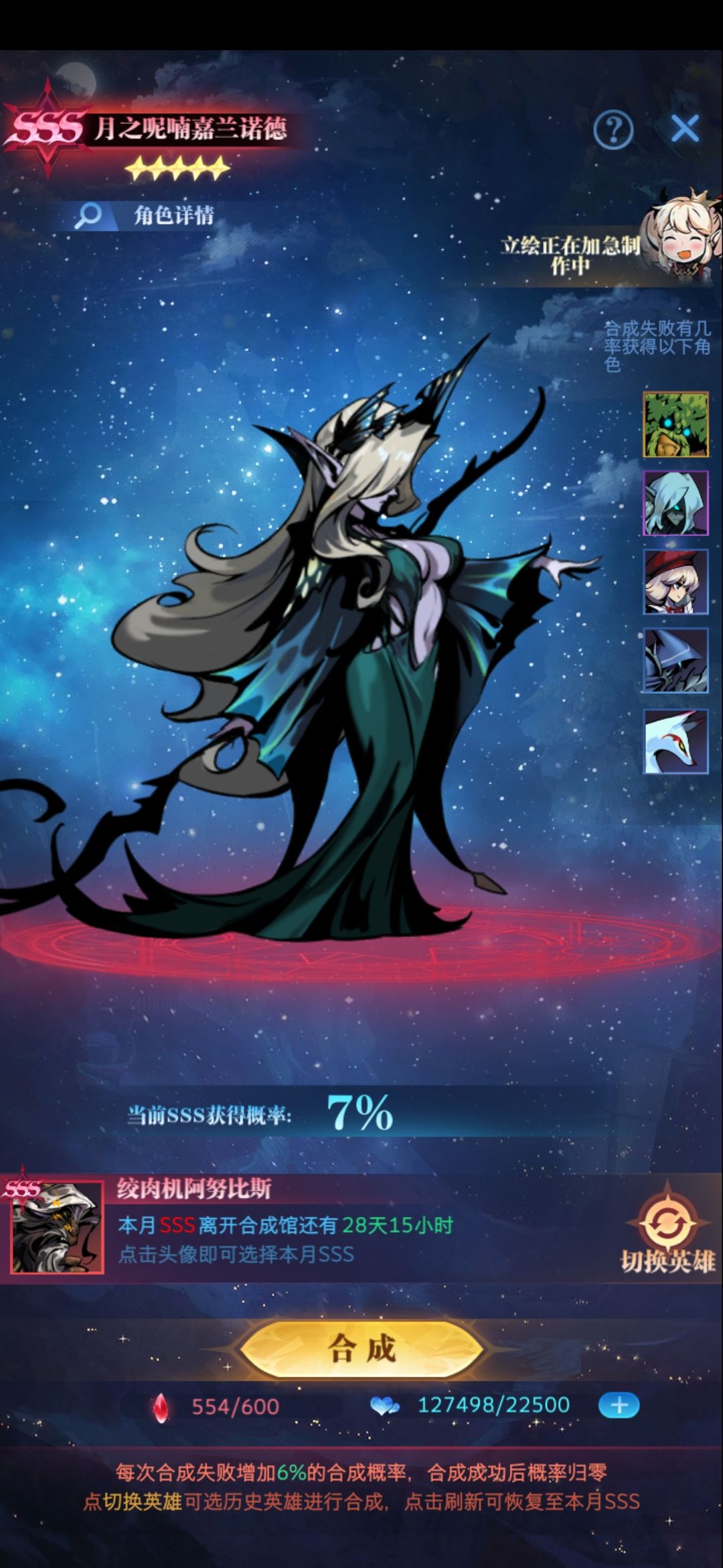呃,概率有点儿不靠谱啊,我是大魔导常驻的呀,不过女主沉默可以试一试,赶紧从图鉴里拉出来吃经验。。。。试了一下和自己还是不匹配。亚瑟还是除了刮痧就是自杀。所以还是要自己研究。