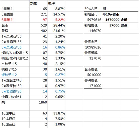 概率暗改了吗?93w古币1860抽概率统计