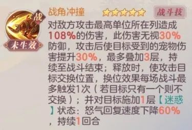 先来说说换位的好处。像马云禄,姜维这样的单体攻击武将,一般很难摸到后排,那么换位的好处就是可以输出对方最高攻。以及打乱对方的潜能布置,改变前后排增减伤和攻击加成。可是,主战真的是鸡肋技能,如果说现在想秒杀对面后排,谁还用得着换位呢,切后队伍简直不要太多。而且现在“正经人”谁把输出放后排呢,都放在前排续命,真正的c位还不是最高攻。主战的30%无视防御和怒气回复下降,这俩个属性并不出彩,因为主战强调的就是换位这个机制,论伤害牛是比不过狐狸的,怒气回复下降,也并不是特有的debuff。总结下感觉福牛的主战技能,就是个猜心思双方斗智斗勇的技能,你恰好抓到了对面的关键人物,不管是从前换到后进行秒杀还是从后换到前造成击杀,都是一种炸胡的现象,并不是稳定致胜的办法。