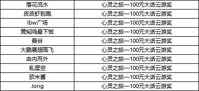 心灵之旅—100元大话云游奖(10份)