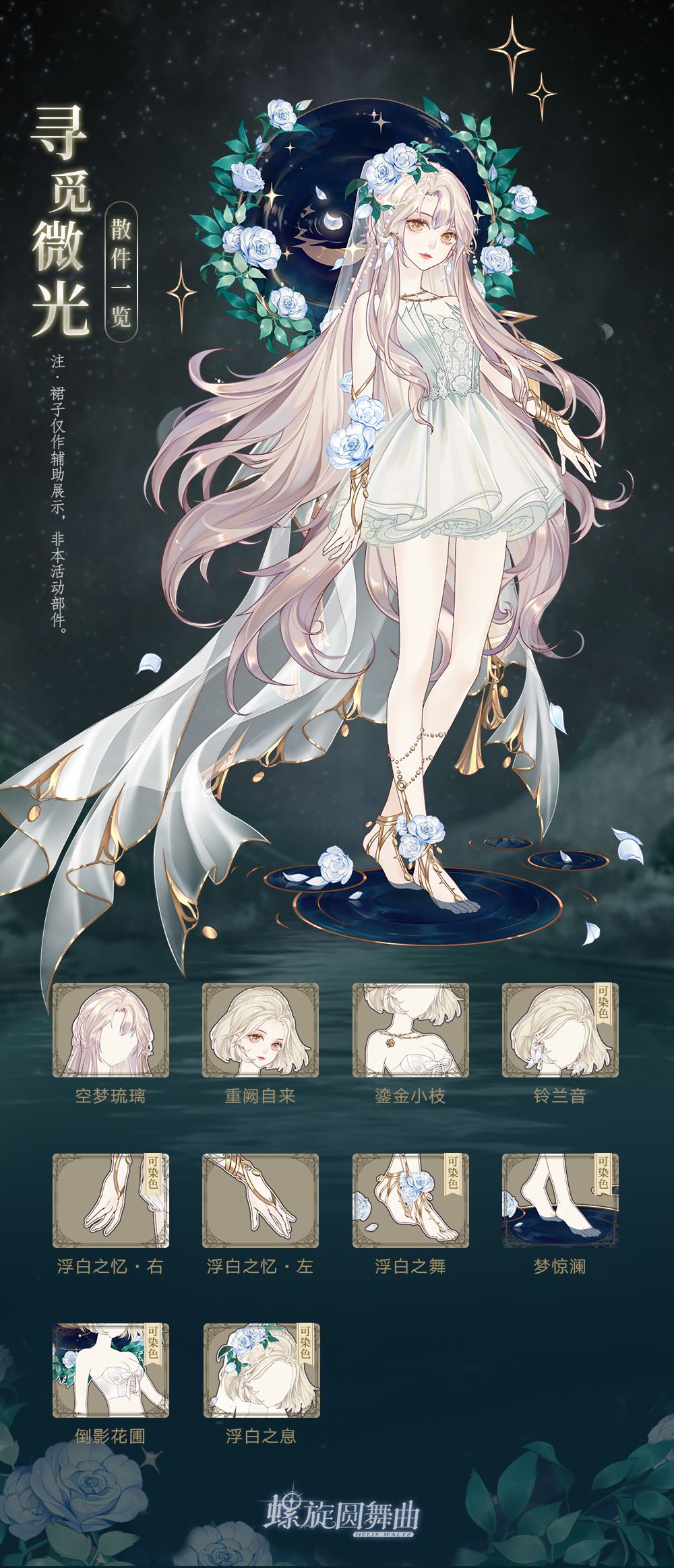 3月4日维护结束后,部件「鎏金小枝」「铃兰音」「浮白之忆•左」「浮白之忆•右」「浮白之舞」上架流雾商店,部件「梦惊澜」上架黛咪商店。