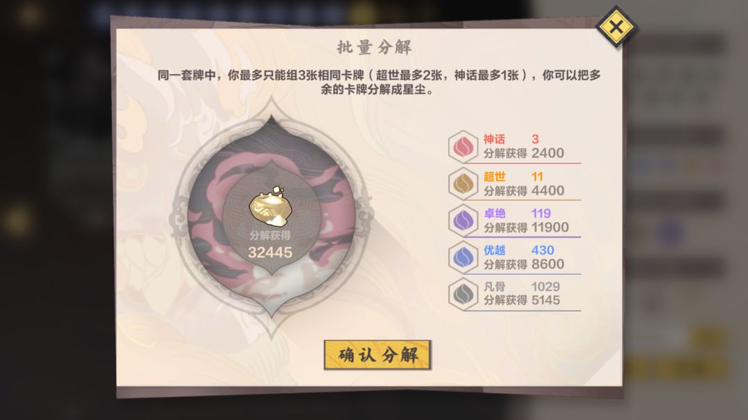 我初期还分了不少卡用来卡组,浪费掉不少尘